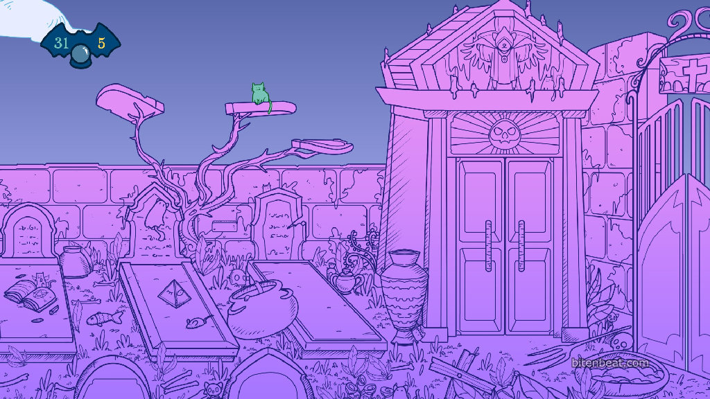 Finally, there’s a battle against the vampire Fofiño, where you need to find the cats before time runs out. This really surprised me. On top of that, you can try to break records by fighting him in an arcade mode.