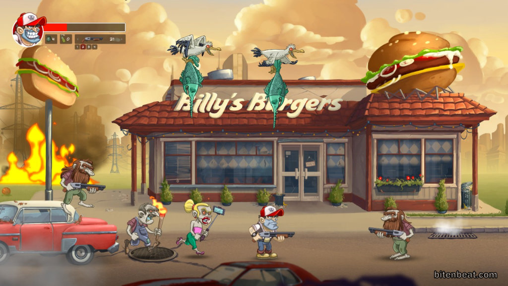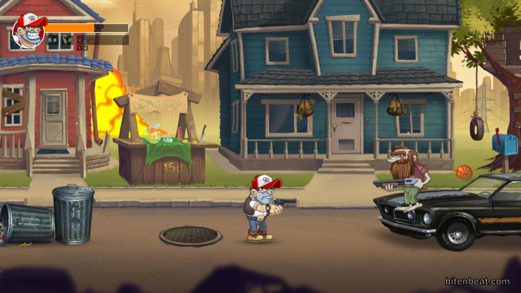 The soundtrack is very good, with a strong rock and roll vibe. The only thing that bothered me was the protagonist’s reactions when he hits an enemy, there are moments in the game where it becomes annoying.