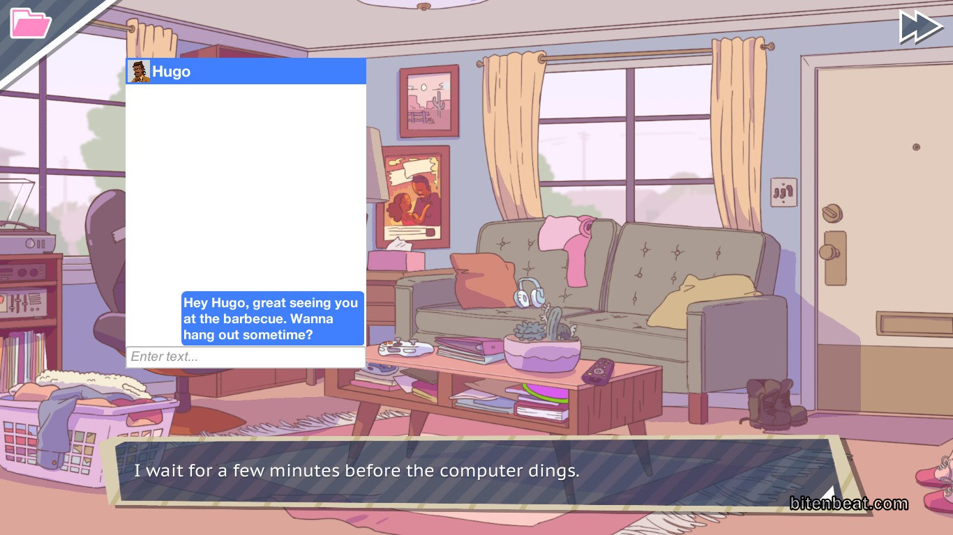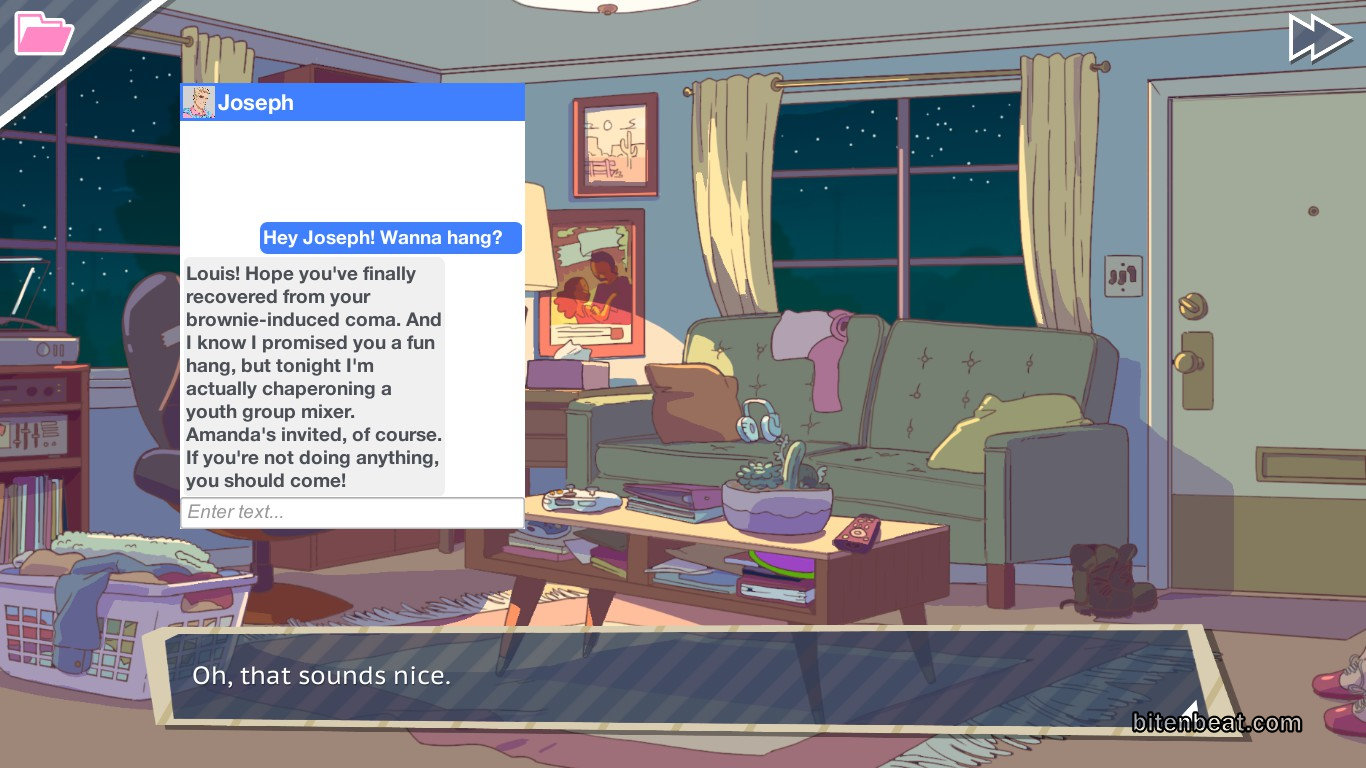 You talking to your daughter in Dream Daddy: A Dad Dating Simulator. You getting a message from Joseph in Dream Daddy. You talking to Joseph. You receiving a message from Hugo in Dream Daddy: A Dad Dating Simulator. You asking your daughter how her middle school was. Talking to one of the characters in Dream Daddy.