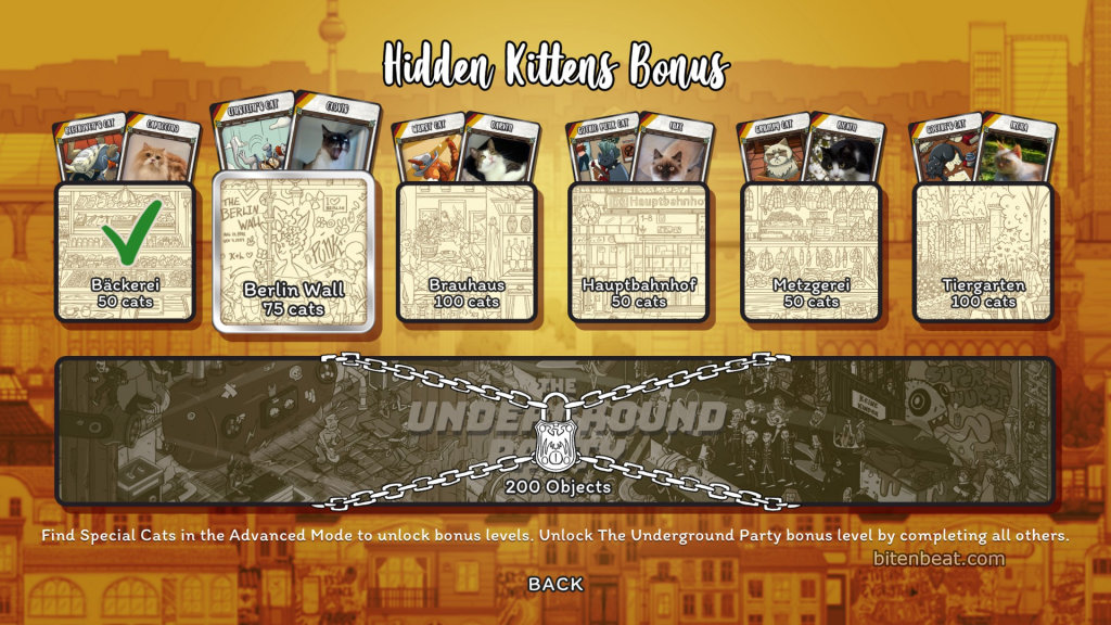 Hidden Cats in Berlin is a hidden object game that takes place in the city of Berlin, with over 970 objects to find, including 200 cats.