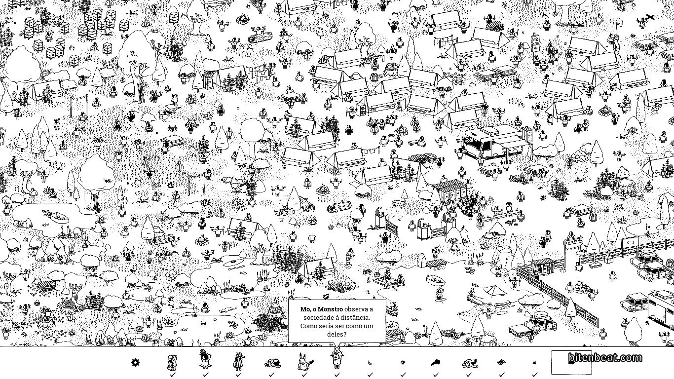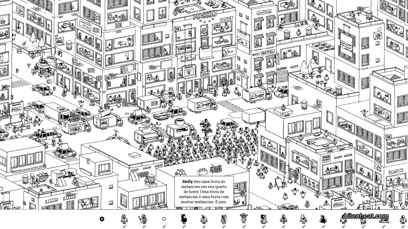 The art is creative, I really liked the style. Even though everything is in black and white (and might seem very confusing at first glance), you can see there was a lot of care, especially in the scenarios that always have something hidden!