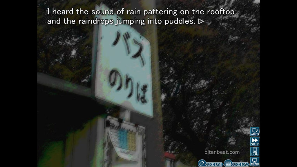 The text is displayed across the entire screen, often overlapping the scenery and characters. This reinforces the feeling that the game is more like a book than a traditional visual novel.