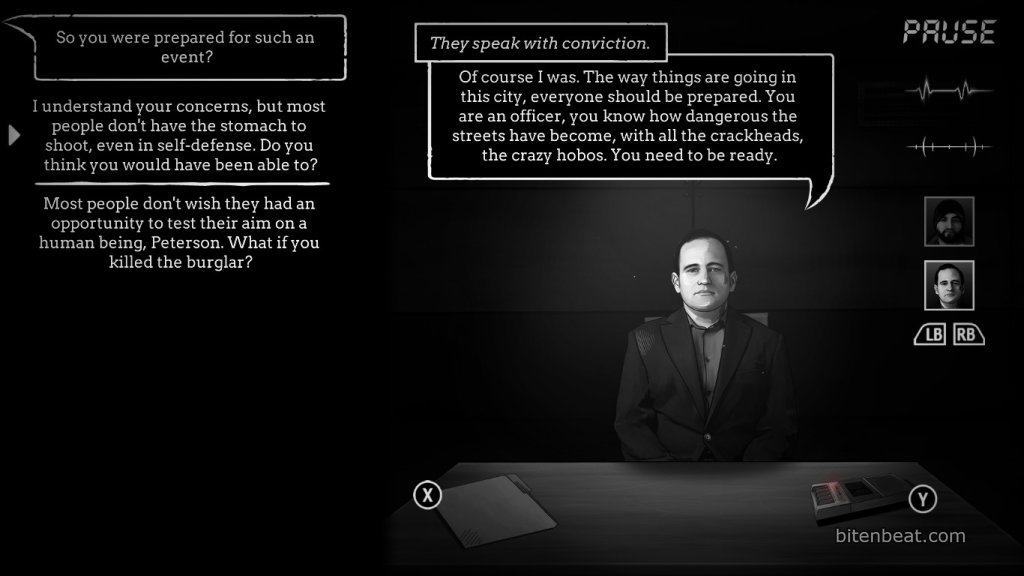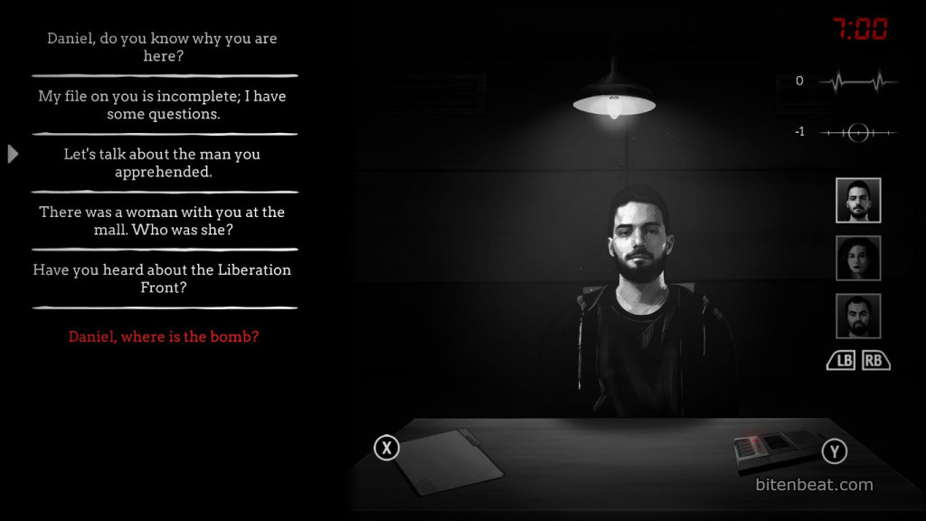 When starting the game, you can choose the difficulty level. Challenge mode lives up to its name and requires you to use all your intelligence and deduction skills to extract confessions. In narrative mode, the difficulty is reduced, allowing the player to focus mainly on the story.