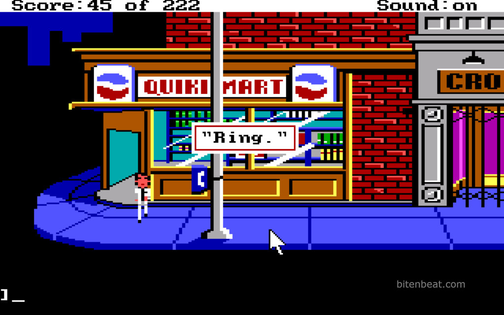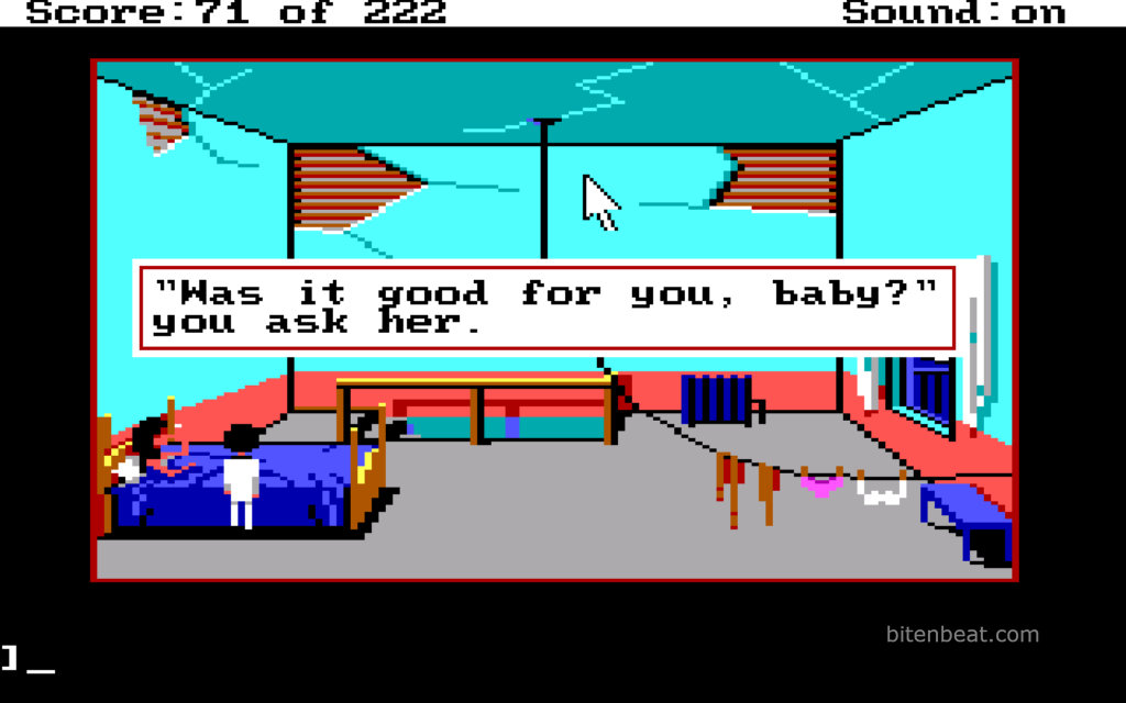 Although it’s text-based, you can interact using the mouse. However, it’s not a point-and-click game, since you still need to type Larry’s actions.