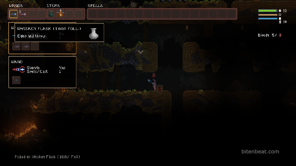 When you open the inventory and hover your mouse over an item, its description is displayed. At first, it’s not very clear what each item does, even with the descriptions. However, as you keep playing, you start to understand the effects of your spells and items.