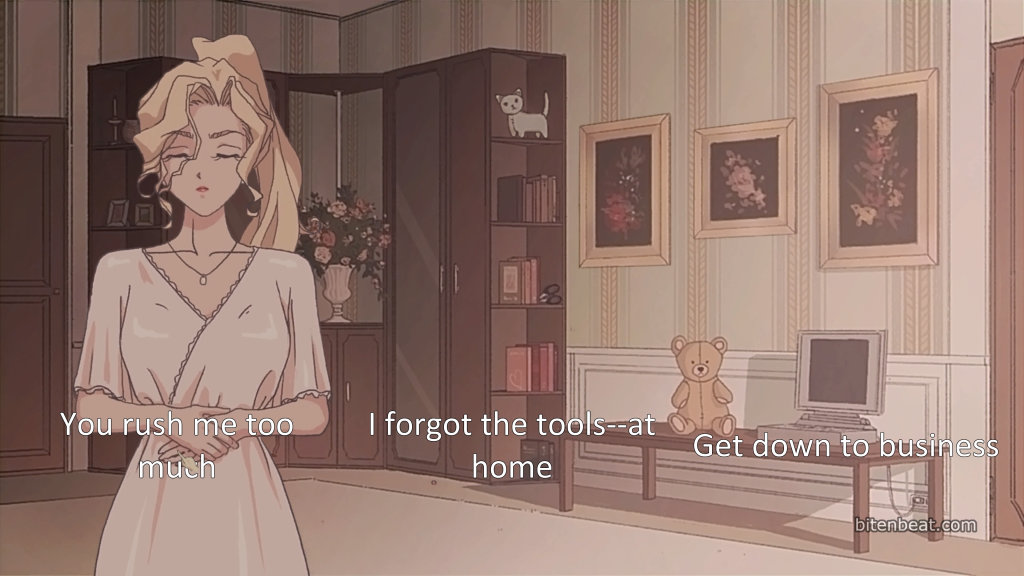 The only visual flaw is the timing of character transitions in some parts. For example, in the moment when Anko is about to sit on the couch to watch soccer, the image of her sitting down appears before the image of her standing disappears.