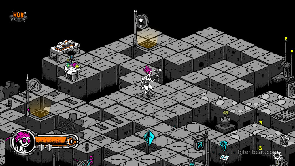 In more complex stages, there seems to be a lot of information on the screen, and visualization can become a bit confusing, especially since the game is almost monochromatic. But it’s nothing you won’t adapt to.