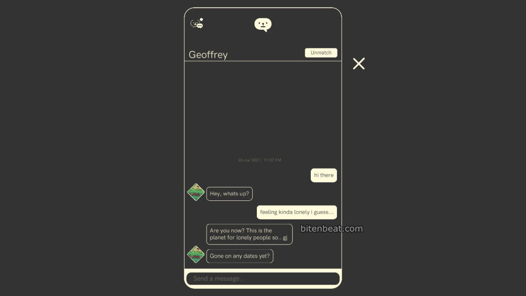 It’s basically a Tinder simulator, you swipe right, match, and chat… and your goal is to secure a second date.