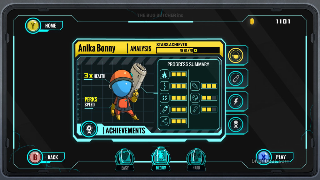 I found the menu options and upgrade screen easy to understand, but I had trouble navigating with the controller. You use directional inputs to move between screens, but even when pressing the correct button, it sometimes feels like the selection gets stuck and doesn’t take you to the desired section. Maybe it’s due to the alignment of the elements on the screen, I’m not sure.